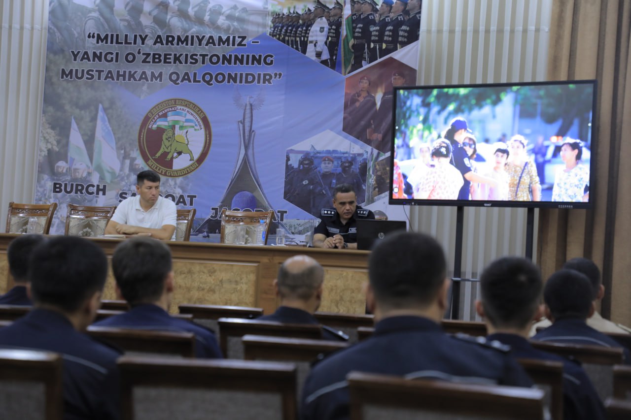 Сурхондарё, Андижон, Наманган, Сирдарё вилоят “Қўриқлаш” бошқармаларининг ҳудудий шаҳар-туман "Қўриқлаш" бўлимларида хизмат олиб бораётган шахсий таркиб ҳамда Миллий гвардия Фарғона минтақавий ўқув марказида таҳсил олаётган тингловчилар иштирокида видеоконференция тарзида "Коррупция – жамият кушандаси" мавзусидаги йиғилиш ўтказилди.