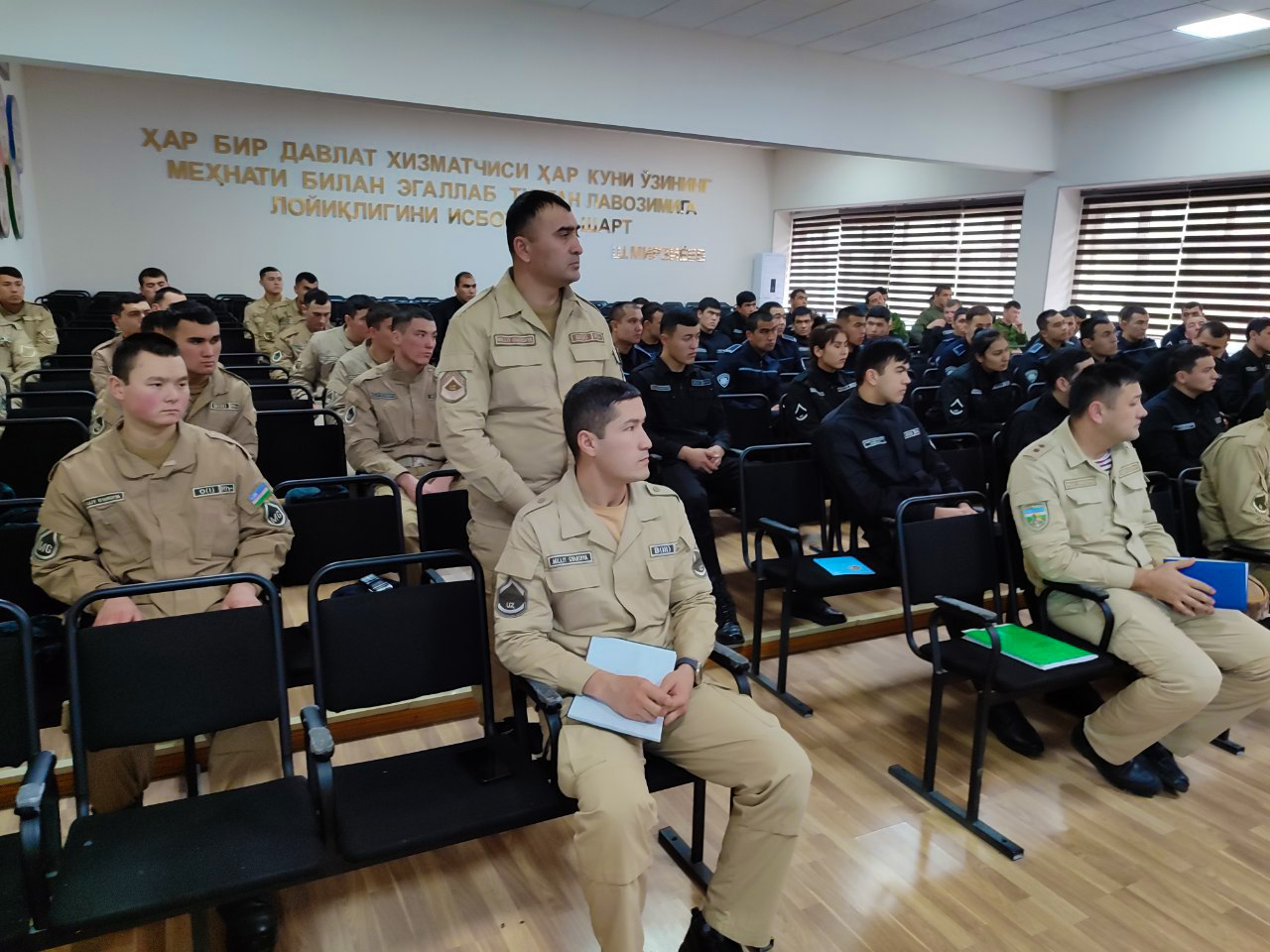 Фарғона ҳарбий прокуратураси масъуллари иштирокида бўлиб ўтган мазкур тадбирда ходимлар ва тингловчиларнинг ҳуқуқий билимларини ошириш, улар орасида салбий ҳолатлар, интизом бузилиши, таваккалчиликка асосланган "тотализатор", қимор ўйинларига берилиб қарзга ботиш ҳолатларини олдини олиш муҳимлиги ҳақида сўз юритилди. Шунингдек, Фарғона шаҳар ФВВ бўлими масъул ходимлари томонидан турли фавқулодда ҳолатлар, айниқса ис газидан заҳарланишнинг олдини олиш, хонадонларни иситишда қўлбола иситиш ускуналаридан нотўғри фойдаланиш натижасида келиб чиқиши мумкин бўлган ҳодисаларнинг салбий оқибатлари юзасидан тушунтириш ишлари олиб борилди.