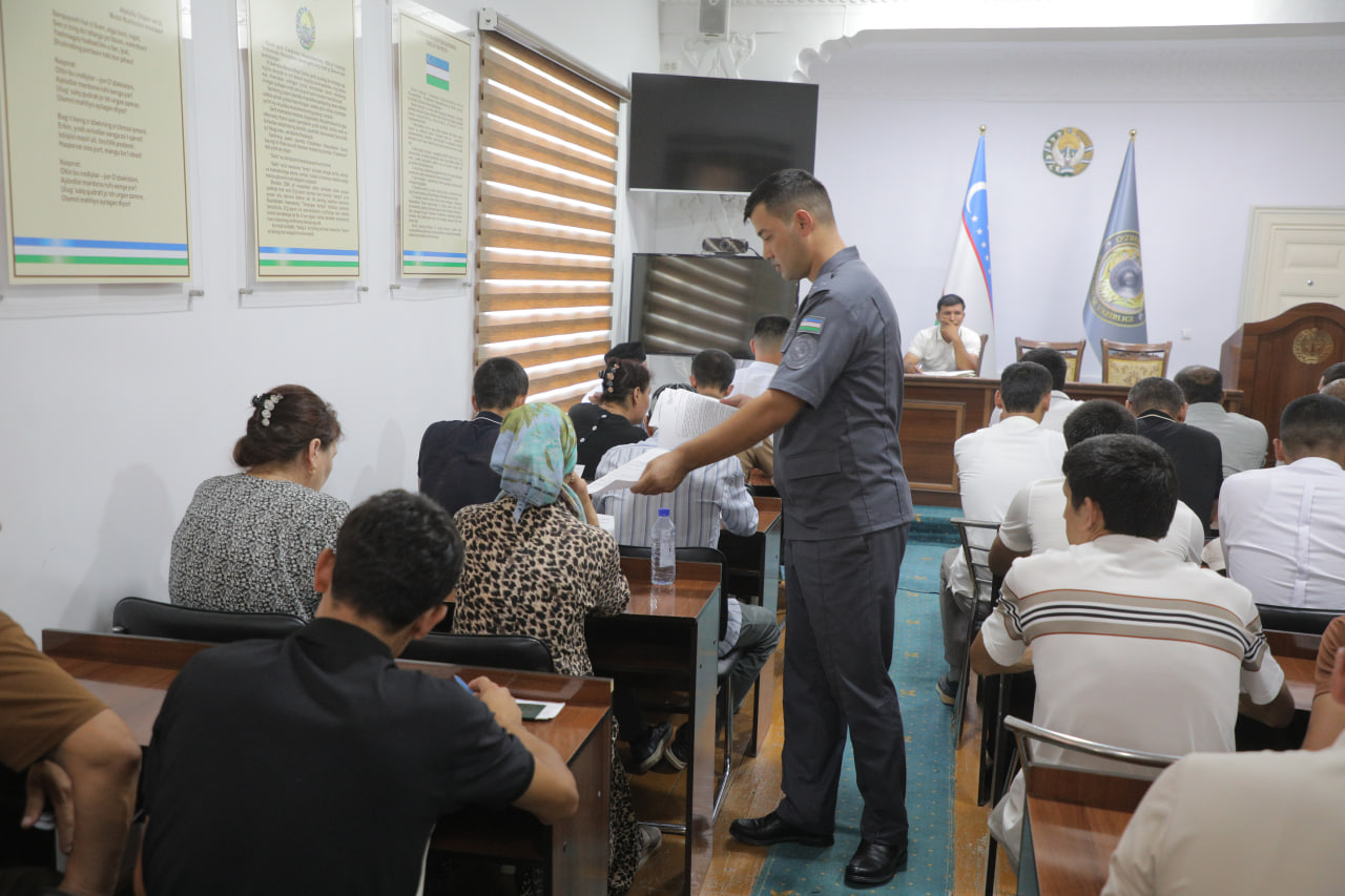 Учрашув давомида мутасадди раҳбарлар томонидан хизмат олиб бориш тартиб-қоидалари, ички интизом талаблари, ходимлар учун белгиланган ҳуқуқ ва мажбуриятлар, шунингдек, коррупциявий ҳолатларнинг олдини олиш масалалари юзасидан батафсил маълумотлар берилди.