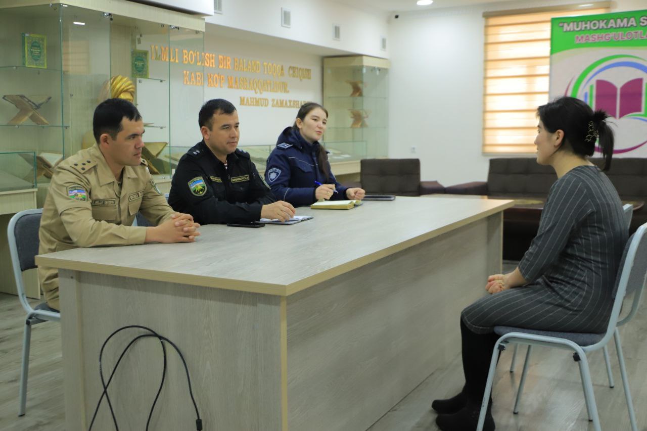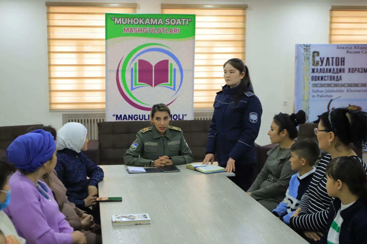 Қабул аввалида "Хотин-қизларга кўрсатиладиган тазйиқ ва зўравонлик ҳолатлари ва улардан ҳимояланиш" мавзусида давра суҳбати ўтказилиб, мазкур давра суҳбатида мутахассислар оила аъзоларига тегишли ҳуқуқий маслаҳатлар берилди.