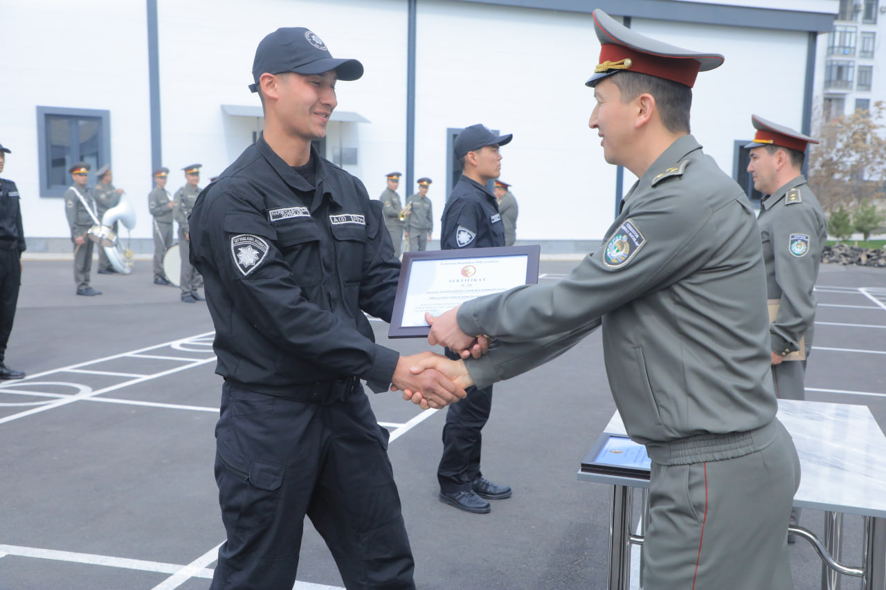 Унда навбатдаги ўқув йиғинини тамомлаган Миллий гвардия ҳарбийлаштирилган қоровуллик бўлинмалари ишчи ва хизматчиларига сертификатлар топширилди.