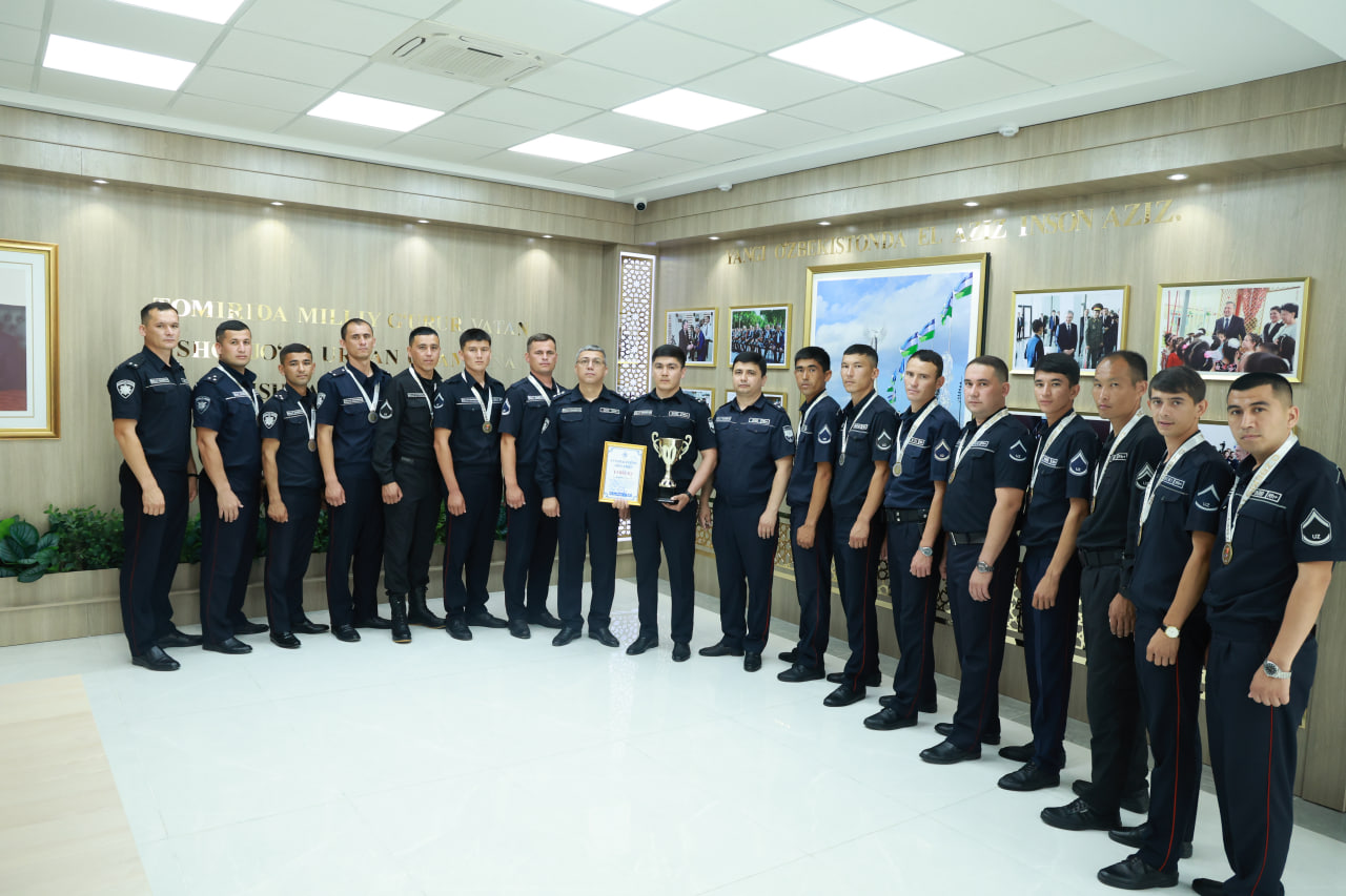 Тошкент шаҳар "Қўриқлаш" бошқармаси ходимларидан иборат жамоа шоҳсупанинг юқорисидан жой олди. Улар фахрли 1 ўринга муносиб кўрилди.
