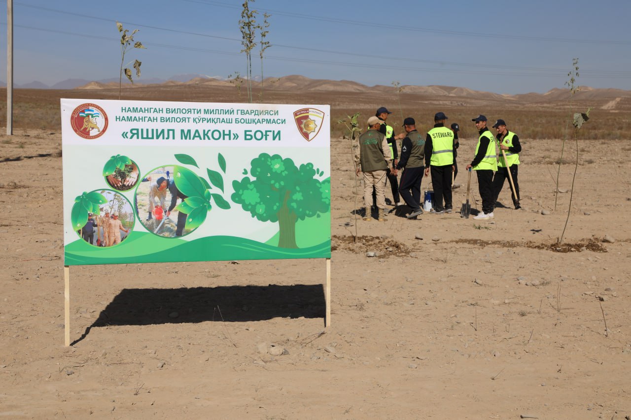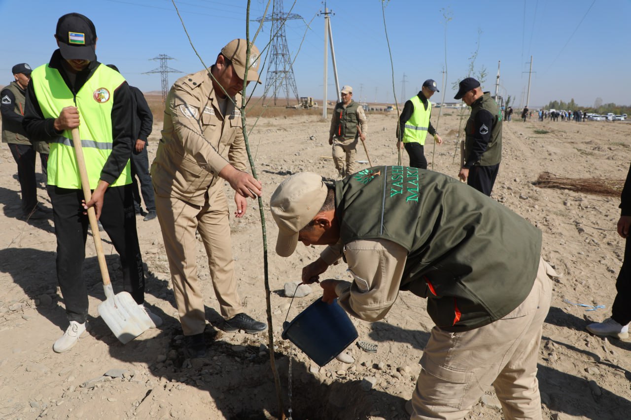 Ушбу тадбирда кенг жамоатчилик вакиллари билан бир қаторда Миллий гвардия ҳарбий хизматчилар ва ходимлари ҳам иштирок этиб, бугуннинг ўзида 7700 дан ортиқ манзарали дарахтлар экилди. Жумладан, 1100 тупдан ортиқ гужум, 800 тупдан ортиқ катальпа ва клён, 1300 тупдан ортиқ акация, Япон софораси, каштан, павловния ниҳоллари, 2300 туп чинор, қайрағоч, арча, 2000 тупдан ортиқ терак, бодом ва бошқа манзарали кўчатлар экилди. Шунингдек, 4000 мингдан ортиқ мевали ва дарахтлар қаламчалари ва 600 дан ортиқ каштан, дуб сингари манзарали дарахтлар уруғлари экилди.