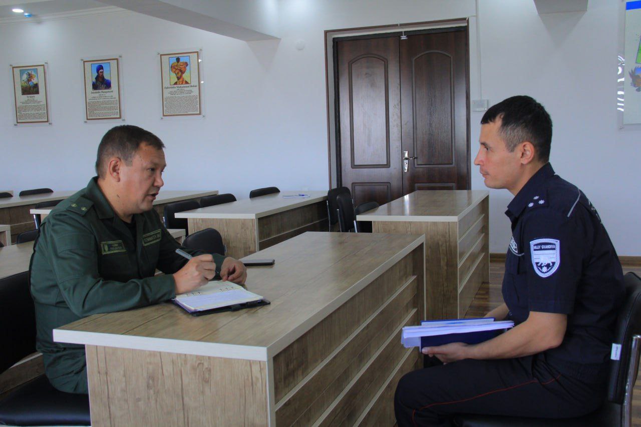 Фарғона вилояти "Қўриқлаш" бошқармасида хизмат қилаётган ходимлар учун Фарғона ҳарбий прокурори катта ёрдамчиси адлия подполковниги Ш.Тошматов томонидан сайёр қабул ташкил этилди.