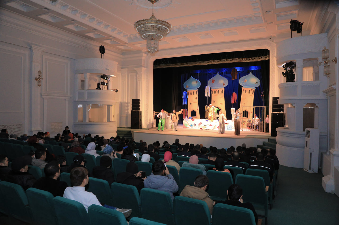 Бу ерда иштирокчилар учун театр жамоаси томонидан саҳналаштирган “Сеҳрли либос” спектакли намойиш этилди. Мазкур спектаклда ҳозирги вақтда жамиятдаги айрим салбий ҳолатлар сатирик йўналишда кўрсатиб берилди. Давлат идорасидаги коррупцион ҳолатлар, порахўрлик иллати актёрлар томонидан моҳирона ижро этилди.