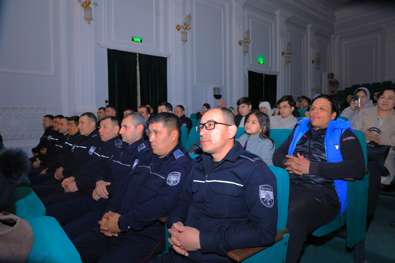 Миллий гвардия Фарғона шаҳар "Қўриқлаш" бўлими ходимлари ва уларнинг оила аъзолари, шунингдек, мактаб ўқувчилари Фарғона шаҳридаги мусиқали драма театрига ташриф буюришди.