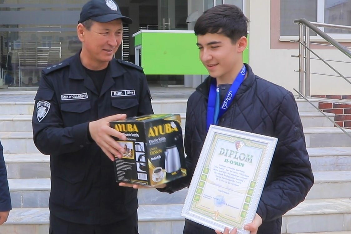 Миллий гвардия Сурхондарё вилояти "Қўриқлаш" бошқармаси ташаббуси билан Термиз шаҳридаги 26-сонли умумтаълим мактабида ташкил этилган навбатдаги спорт мусобақаси ҳам ўғил-қизлар орасидан спортга тобланган иқтидорлиларни саралаб олишга хизмат қилди. Стол теннис бўйича ўтказилган биринчилик мусобақасида ўғил болалар ва қизлар яккалик баҳсларида ўз имкониятларини синаб кўрдилар. 100 нафарга яқин иштирокчилар қатнашган беллашувларда ёшлар чаққон ва зийраклигини намоён этдилар. Айниқса финал баҳслари янада қизғин ва муросасиз бўлди. Мусобақа якунида фахрли ўринларни қўлга киритиб ғолиб бўлган ўғил-қизлар "Қўриқлаш" бошқармаси бошлиғи томонидан диплом, медаль, кубок ҳамда эсдалик совғалари билан тақдирландилар.