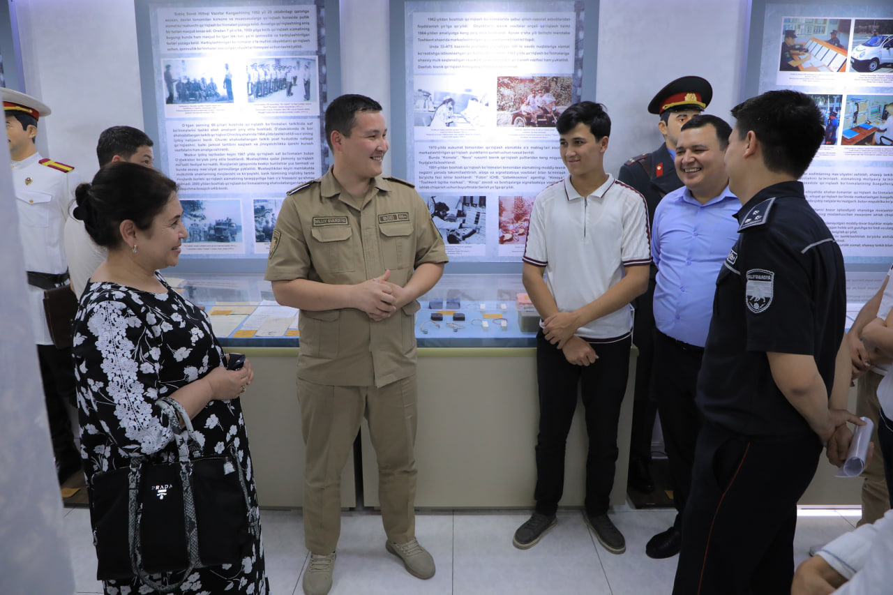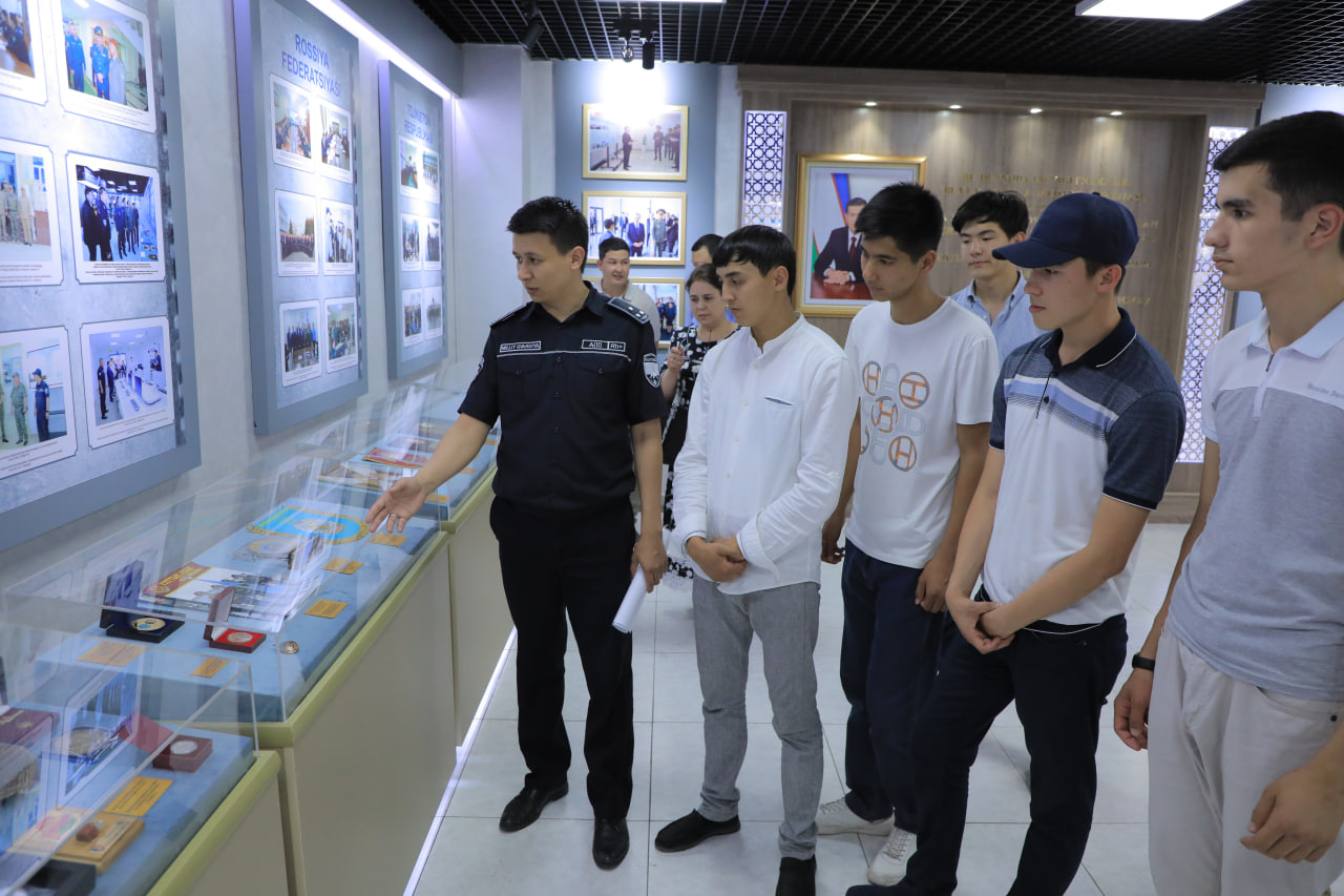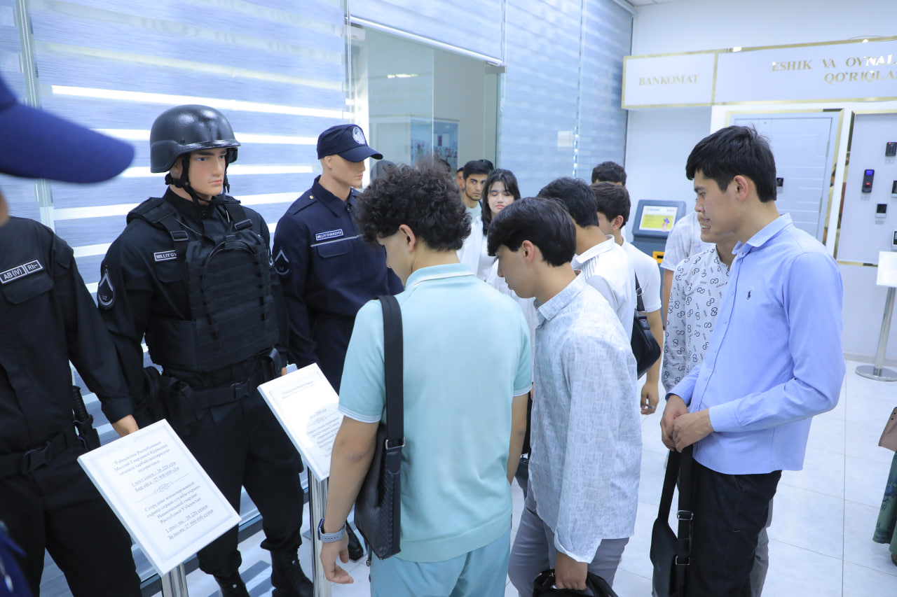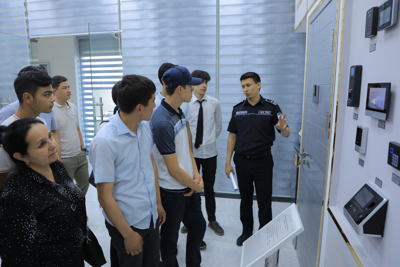 Шунингдек, йигит-қизларни ишончли қўриқлашни таъминловчи, замонавий техник воситалар билан таништириш мақсадида интеграллашган ускуналар, қўриқлаш жамланмалари ўрин олган намойишлар хонасига ҳам ташрифи ташкил этилди.