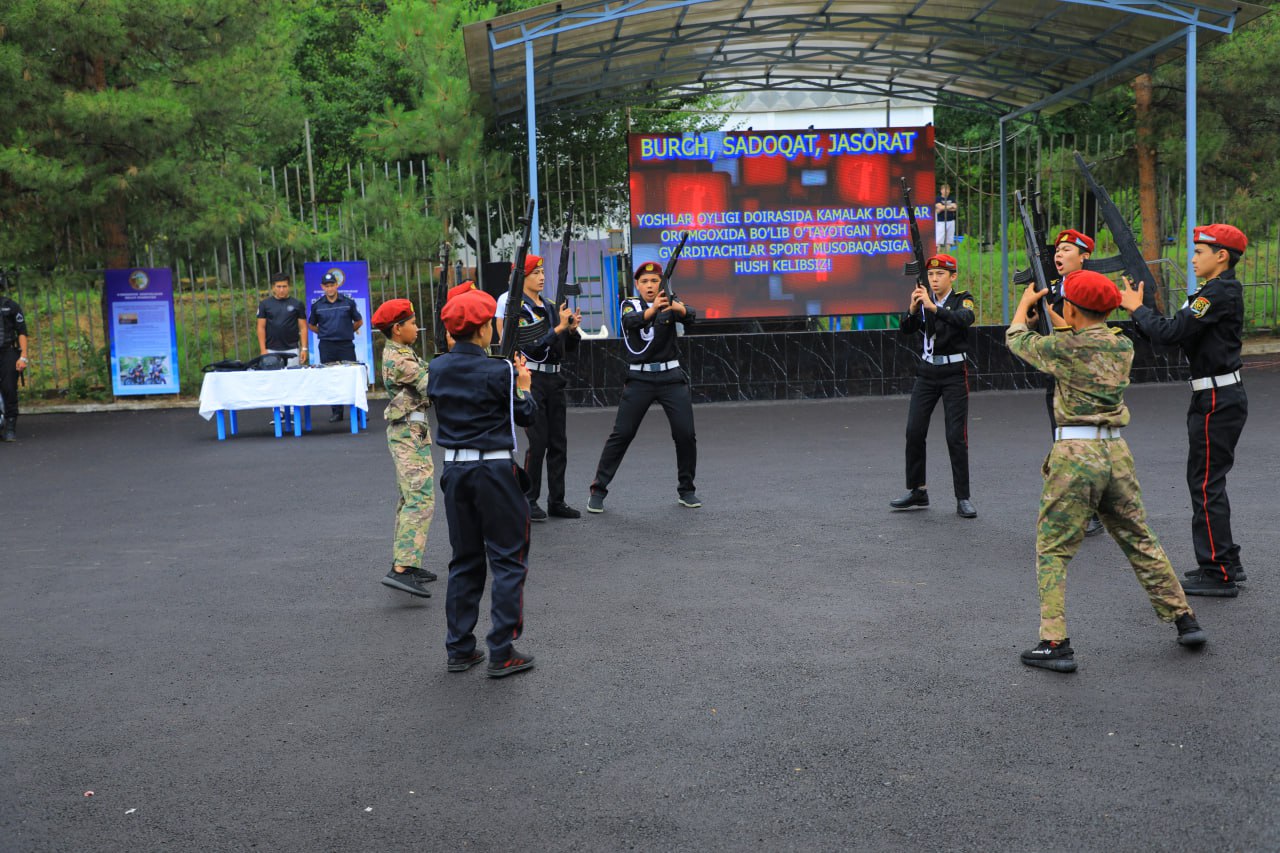 Ўзбекистон Республикаси бўйлаб эълон қилинган ёшлар ойлиги доирасида ёшларни ҳар томонлама етук ҳамда ватанпарварлик руҳида тарбиялаш мақсадида Тошкент вилояти "Қўриқлаш" бошқармаси томонидан Бўстонлиқ туманидаги "Камалак" болалар ёзги соғломлаштириш оромгоҳида ёшлар ўртасида “Ёш гвардиячилар” спорт мусобақаси бўлиб ўтди.