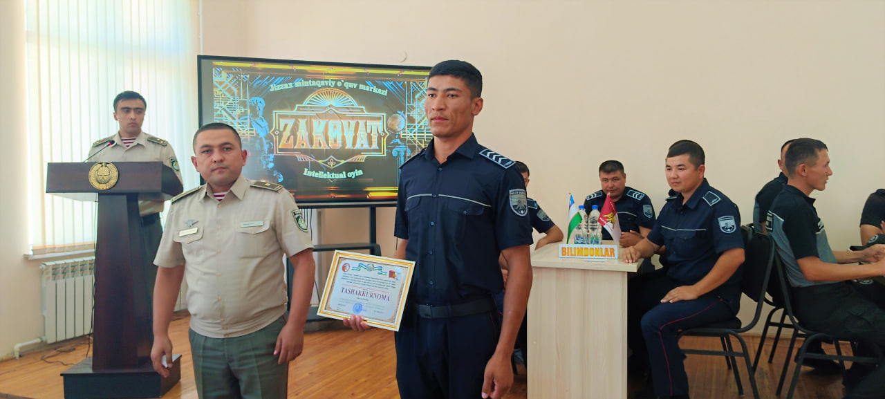 Миллий гвардия Жиззах минтақавий ўқув марказида доимий шахсий таркиб ҳамда тингловчиларнинг ўзбек адабиёти, бой тарихи ва маданиятини кенг тарғиб қилиш, яқиндан таништириш ва тўпланган билимларини синовдан ўтказиш мақсадида куни кеча “Заковат” интеллектуал ўйини ўтказилди.