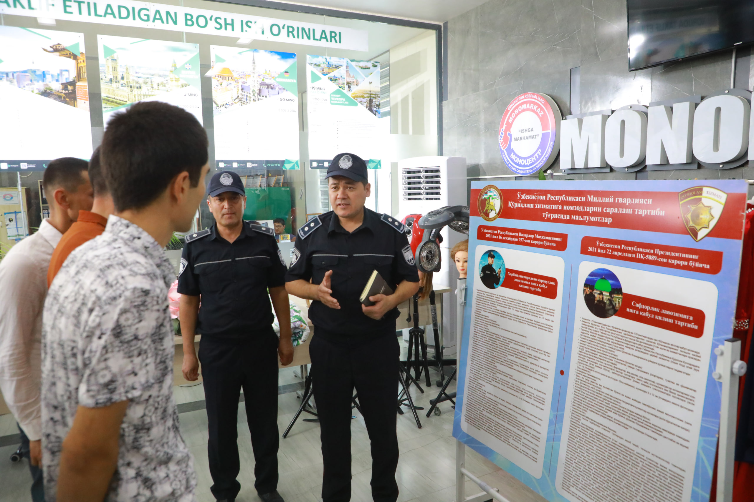 Мазкур ярмаркада "Қўриқлаш" хизматига ишга кириш истагида бўлган ишсиз ёшларга масъул ходимлар томонидан зарур тавсиялар берилди. Бундан ташқари "Қўриқлаш" бошқармаси ходимларининг оила аъзолари мазкур ярмаркада фаол иштирок этиб, вилоятдаги мавжуд бўш иш ўринлари ҳақида етарлича маълумотларга эга бўлишди.
