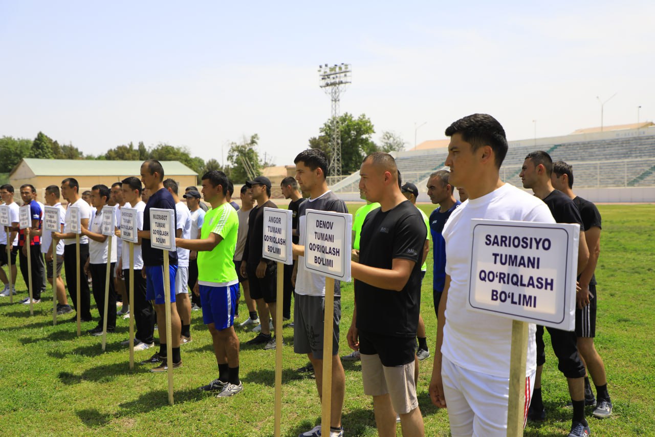 Термиз шаҳридаги Алпомиш ўйингоҳида Миллий гвардия Сурхондарё вилояти "Қўриқлаш" бошқармаси шаҳар ва туман "Қўриқлаш" бўлимларида хизмат олиб бораётган ходимлар ўртасида спортнинг функционал кўпкураш тури бўйича "Қўриқлаш" бошқармаси бошлиғи кубоги учун мусобақа ташкил этилди. Унда шаҳар ва туман "Қўриқлаш" бўлимлари ходимларидан иборат 14 та жамоалар мураккаб машқлар, турли эстафеталарни ўзида мужассам этган 5 та шарт бўйича жамоавий беллашдилар.