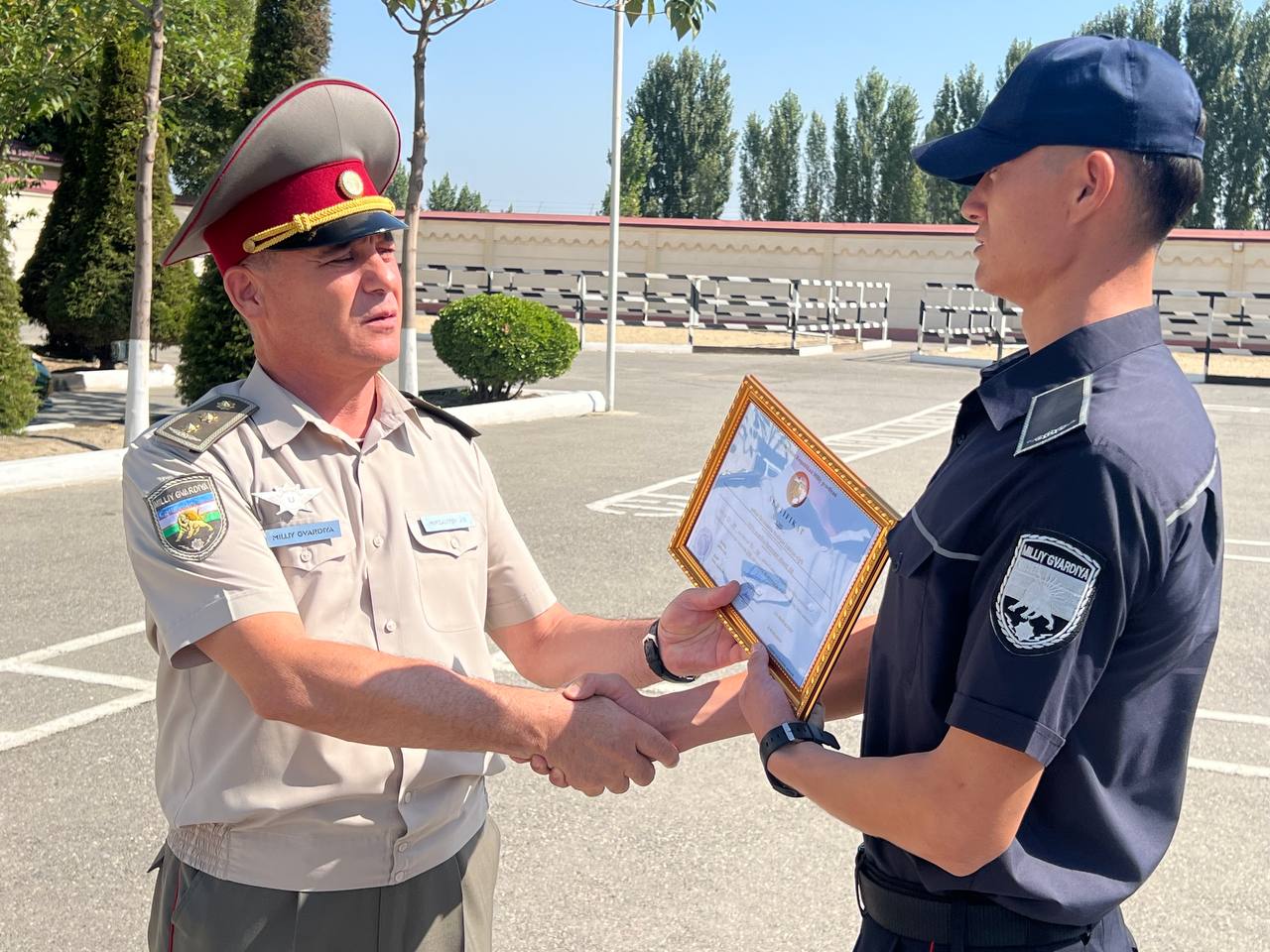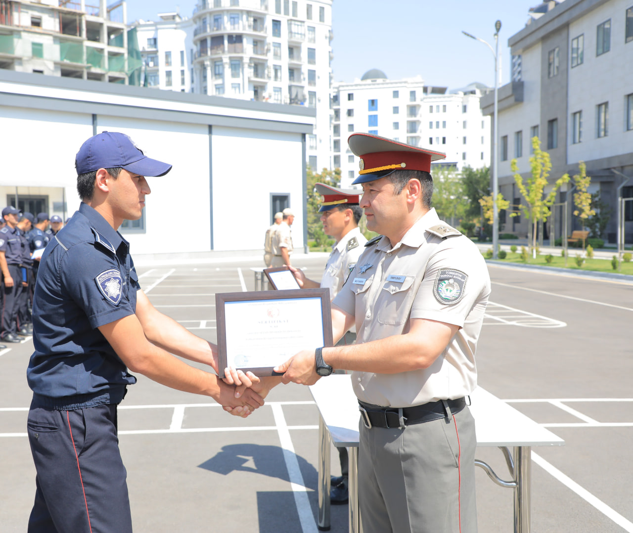 Куни кеча "Қўриқлаш" бўлинмаларининг сафдор ходимлари 148 соатлик бошланғич тайёргарлик ва малака ошириш ўқув курсларида ўзларининг касбий тайёргарлик йўналишларидаги билим ва кўникмаларини мустаҳкамлаб, мазкур курсларни муваффақиятли якунлаганликлари учун сертификатларга эга бўлишди.