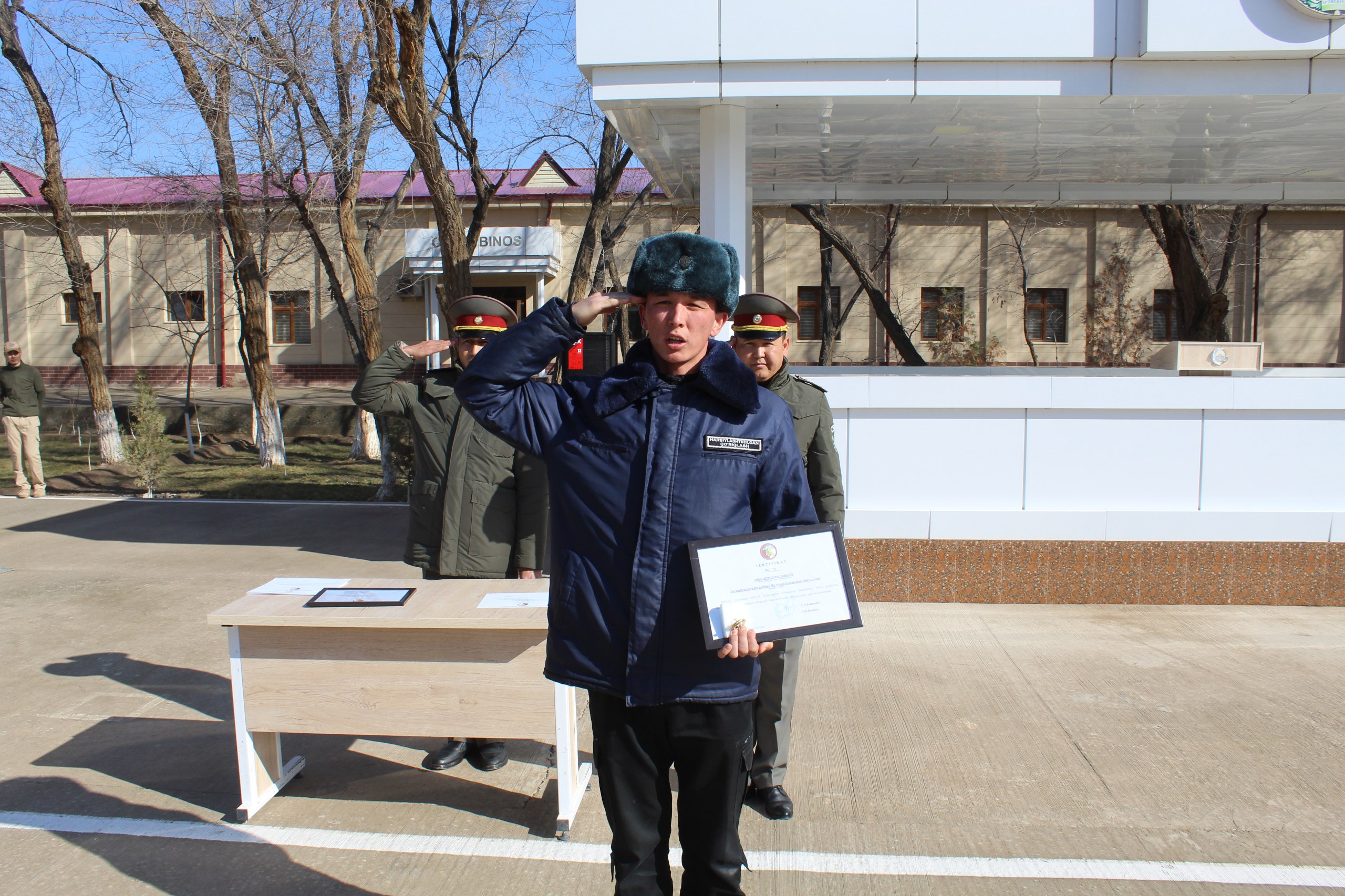 Шунингдек, ўқув йиғинини муваффақиятли тамомлаган навбатдаги бошланғич тайёрлаш ўқув режаси ва дастури асосида Миллий гвардия "Қўриқлаш" хизмати ҳарбийлаштирилган қоровуллик лавозимларидаги ишчи-хизматчилари ўқув курсини муваффақиятли тамомлаб, уларга тантанали равишда сертификатлар ва ўқув маркази нишонлари топширилди.