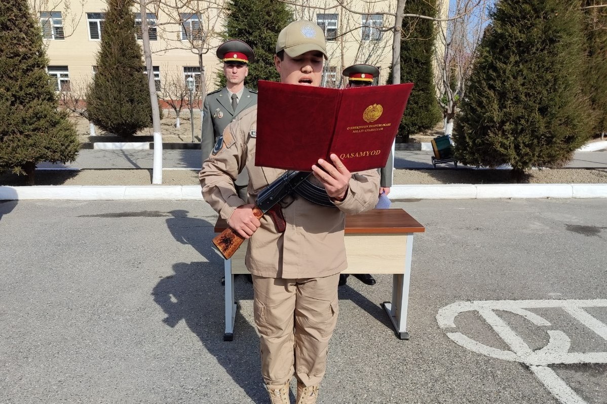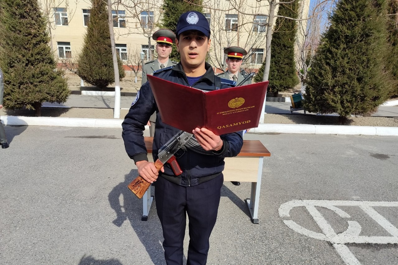 Жумладан куни кеча Миллий гвардия Фарғона вилояти ҳамда Қорақалпоғистон Республикаси минтақавий ўқув марказларида бошланғич тайёрлаш ўқув режаси ва дастури асосида Ўзбекистон Республикаси Миллий гвардияси "Қўриқлаш" бош бошқармаси сафдорлар таркибида хизмат қилаётган ходимлар ҳарбий қасамёдга келтирилди.