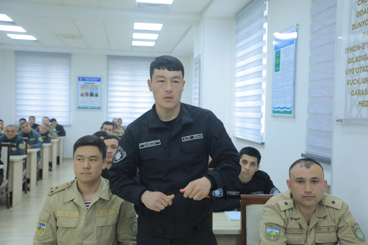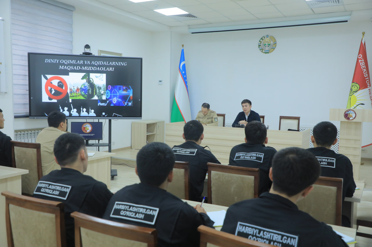 Ўзбекистон Республикаси Миллий гвардияси Тошкент минтақавий ўқув маркази шахсий таркиби ўртасида ҳушёрлик ва огоҳликни ошириш, турли ёт ғояларга қарши уларнинг маънавияти ва билимини янада ошириш мақсадида Ўзбекистон Республикаси Дин ишлари қўмитаси масъул ходими иштирокида машғулот ташкил этилди.
