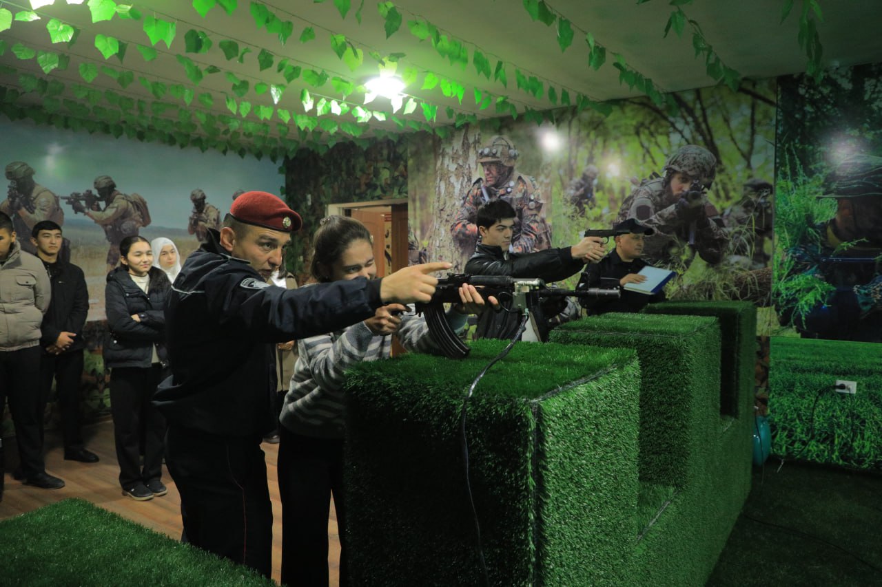 Бундан ташқари, электрон ўқ отиш хонасида талаблар реал вазиятга яқинлаштирилган шароитда ўқ отиш машқларини амалий бажариш имкониятига хам эга бўлдилар. Бу каби тадбирлардан кўзланган асосий мақсад ўсиб келаётган ёш авлодни ватанпарварлик руҳида тарбиялаш ҳамда она-Ватанга муҳаббат хиссини оширишдан иборатдир.