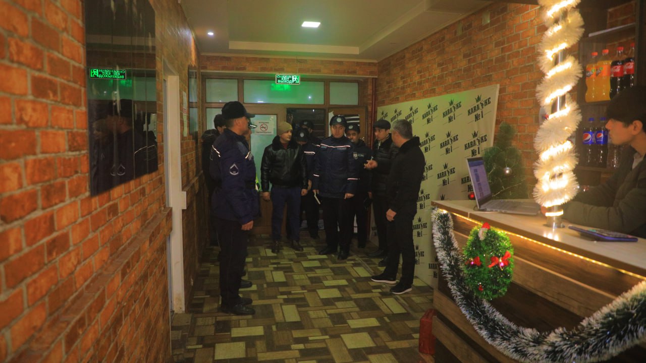 Фуқароларимиз Янги йил шодиёналари арафасида байрамини тинч ва осуда ўтказишлари учун республикамизнинг барча вилоятларида хусусан, "Қўриқлаш" бош бошқармаси ва унинг ҳудудий бўлинмалари ходимлари томонидан жойларда жамоат тартибини сақлаш ва хавфсизликни таъминлаш мақсадида кучайтирилган тартибда тезкор-профилактик тадбирлар олиб борилмоқда.