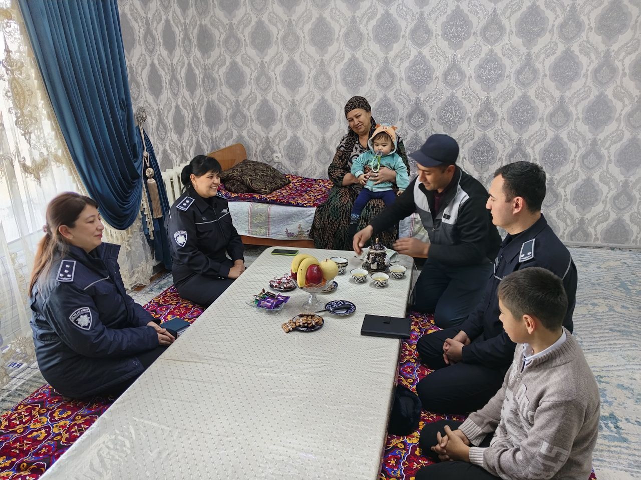 Бундан ташқари "Қўриқлаш" хизматида фаолият олиб бораётган ходимларнинг хонадонларида “ходимбай” тизими асосида ўрганишлар олиб борилиб, оила аъзолари билан ходимлар ўртасида хизмат интизомини мустаҳкамлаш, ноқонуний ишларга аралашмаслик ва келиб чиқиши мумкин бўлган салбий ҳолатларни олдини олиш мақсадида ҳамкорликни йўлга қўйиш, оилада соғлом муҳитни яратишда оила аъзоларининг роли муҳим эканлиги, ватанпарварлик ва шукроналик оиладан бошланиши, ходимларни ижтимоий ҳимоя қилиши мақсадида берилаётган имкониятлар тўғрисида суҳбат ўтказилди.