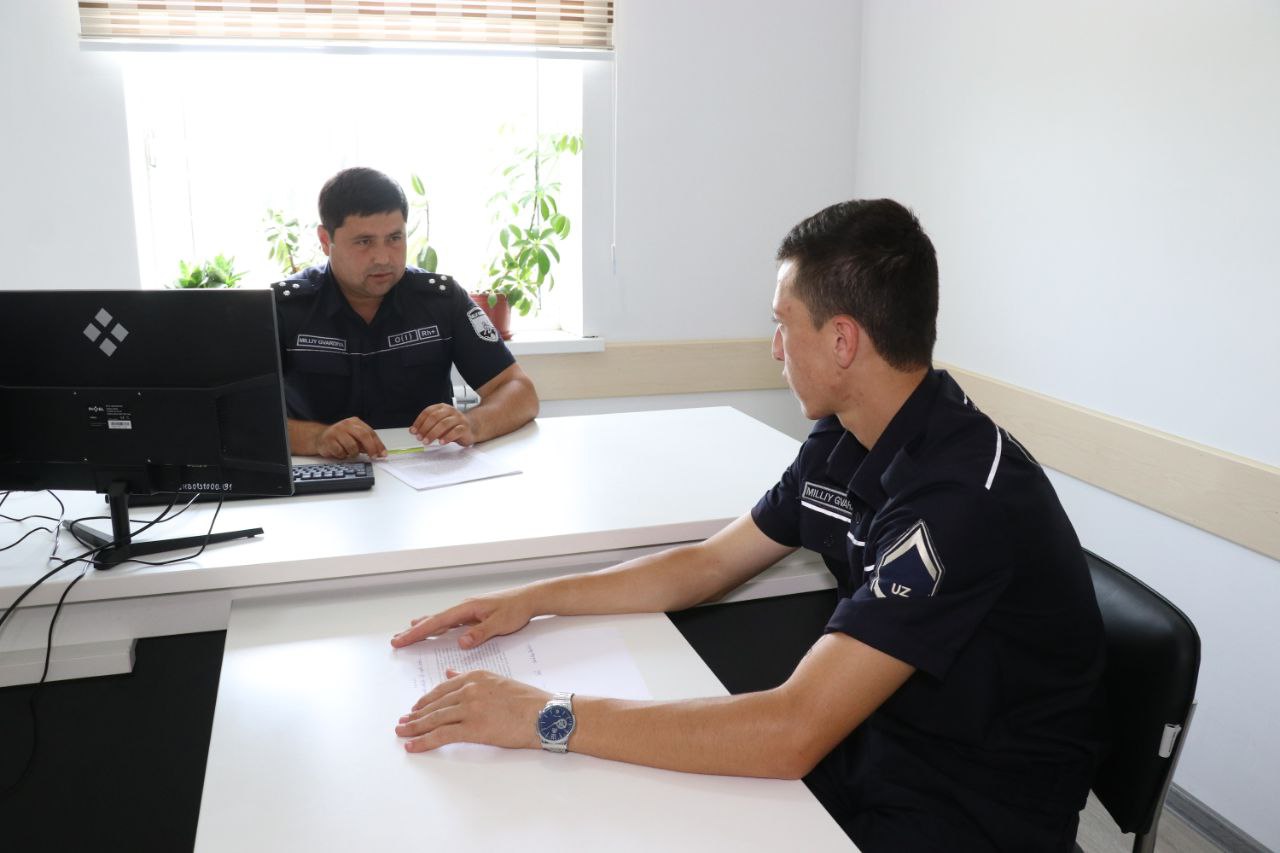 Миллий гвардия ходимларининг касбий фаолиятида шахснинг жамоага, хизмат ва оддий ҳаёт тарзидан фарқ қилувчи қатъий кун тартиби ва шахслараро муносабатларга киришиш ва мослашиш алоҳида ўрин тутади.