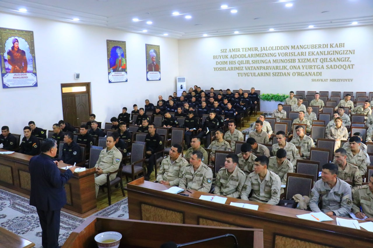 Миллий гвардия ҳарбий хизматчи ва ходимлари иштирокида хизмат интизомини мустаҳкамлаш, уларнинг ҳуқуқий билимларини янада ошириш ҳамда шахсий таркиб ўртасида содир этилиши мумкин бўлган салбий ҳолатларнинг олдини олиш масалаларига бағишланган учрашув бўлиб ўтди