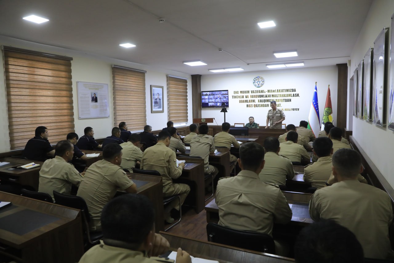 Миллий гвардия Сурхондарё вилояти "Қўриқлаш" бошқармаси ҳамда вилоятнинг шаҳар-туман "Қўриқлаш" бўлимлари ходимлари иштирокида соҳада хизмат интизомини мустаҳкамлаш, қонун устуворлигини таъминлаш масалаларига бағишланган учрашув бўлиб ўтди.